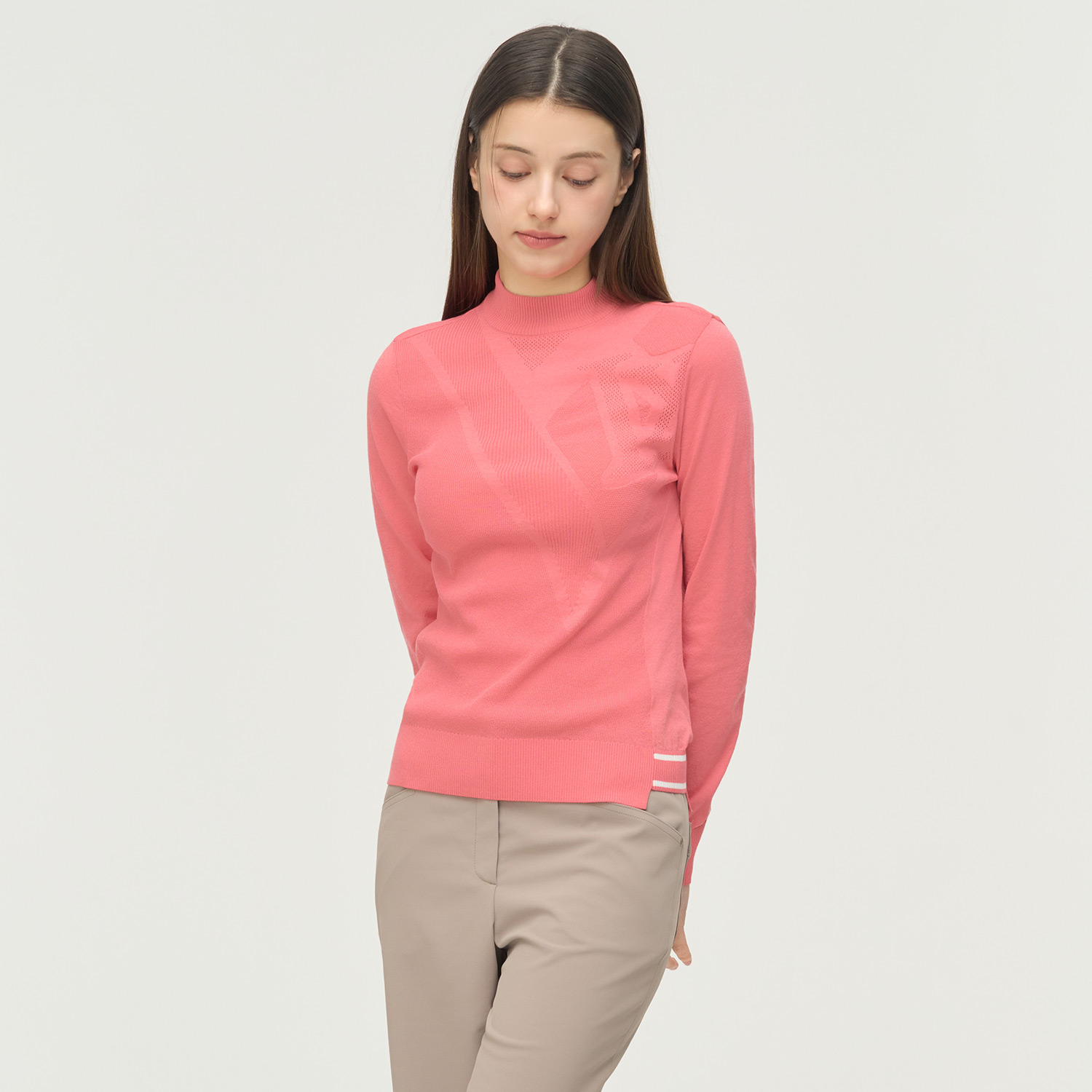 [26SS] 여성 로고 조직 모크넥 니트 L21F1SR351_BG