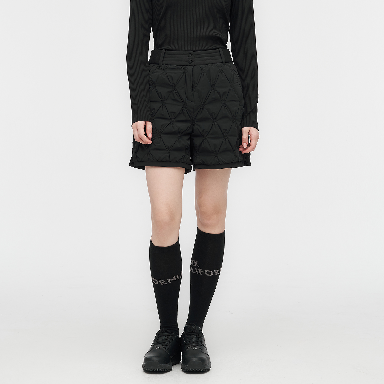 [25FW] 여성 패딩 퀼팅 하프 팬츠 L21E4PM282_BK